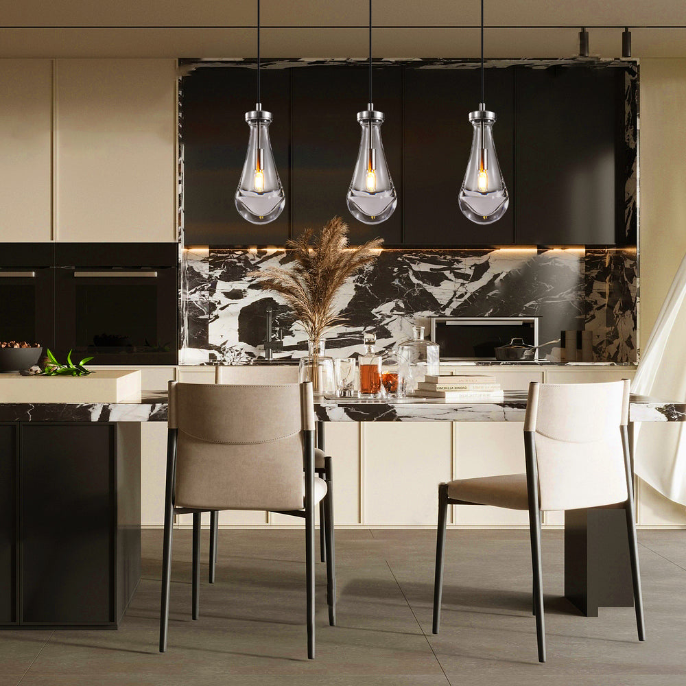 Our Raindrop Rectangular Chandelier is a captivating piece with raindrops that look like raindrops. Handcrafted from blown glass and a metal frame, this fixture is lit to refract a rich light effect, creating the illusion of underwater lighting. |